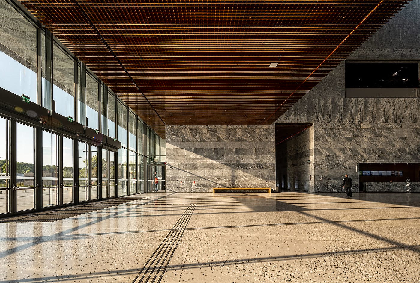 Jansen VISS oferă flexibilitate constructivă, permite panouri vitrate la scară mare, menținând claritatea formelor și controlul geometric al fațadei.